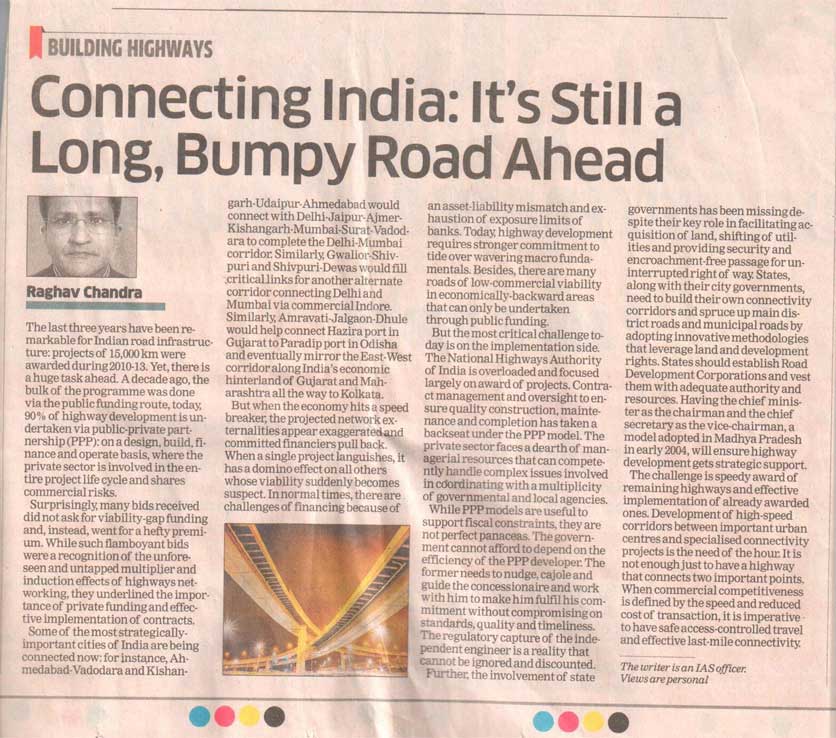 Connecting India: It’s Still a Long, Bumpy Road Ahead : The Economic Times, 14th Sep. 2013