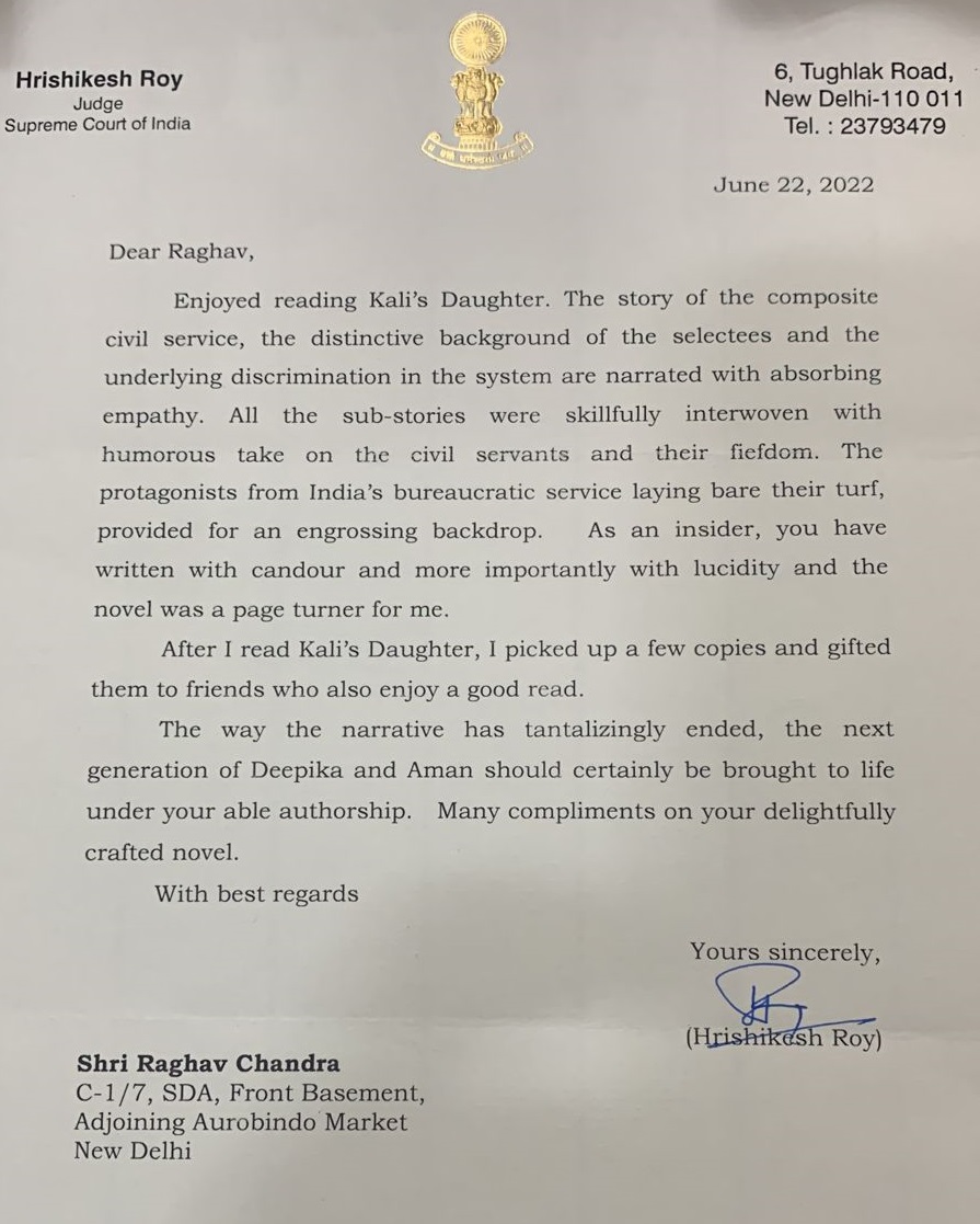 View:Letter by Shri Harishikesh Roy, Hon. Judge Supreme Court of India, 22.06.2022